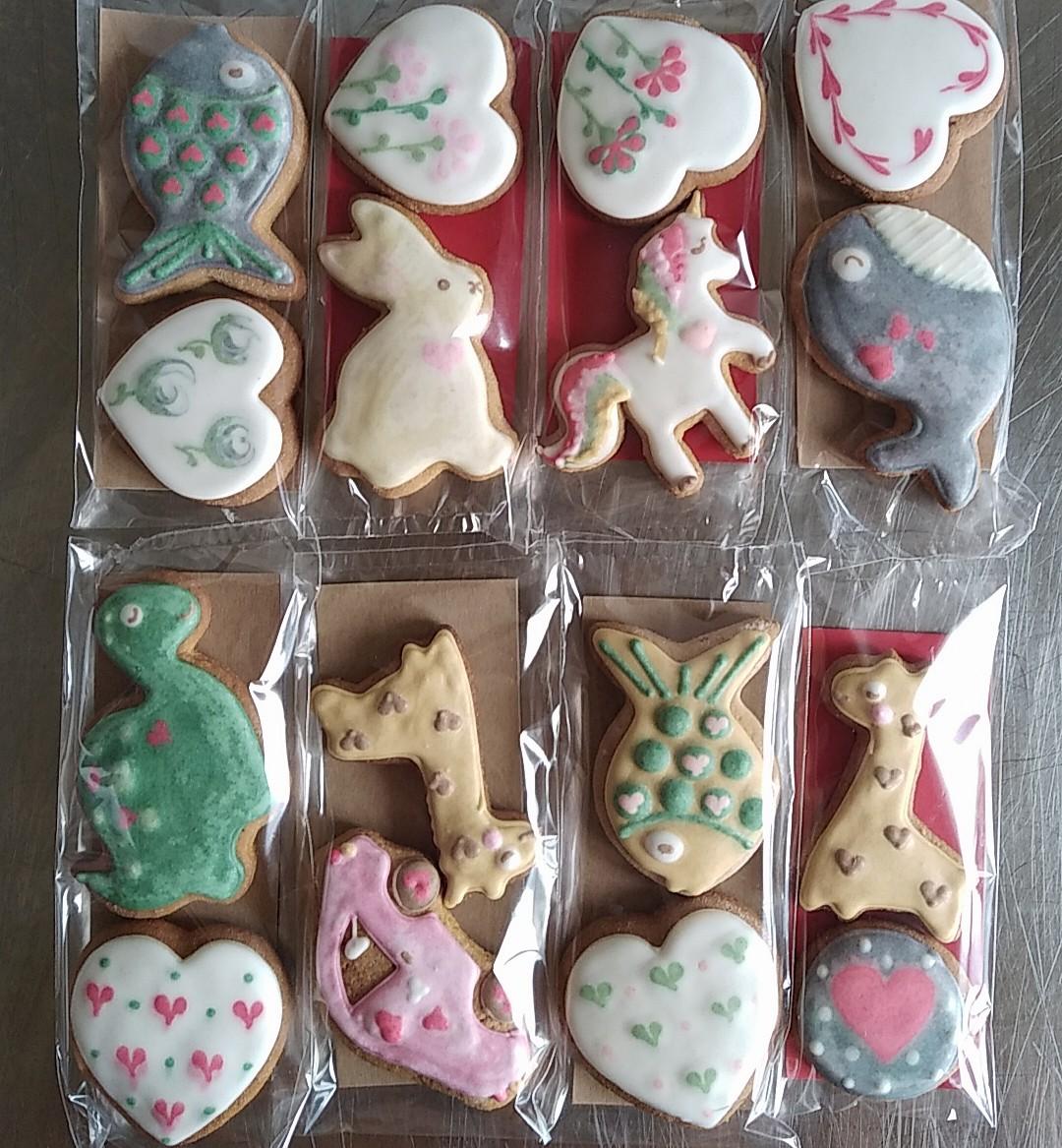glaçage: sucre(FR),blanc d'oeuf (Meuse, Bio),jus citron, colorants naturels: curcumine, caroten, spiruline, extrait de paprika, hibiscus, chrorophylle, charbon végétal, cacao